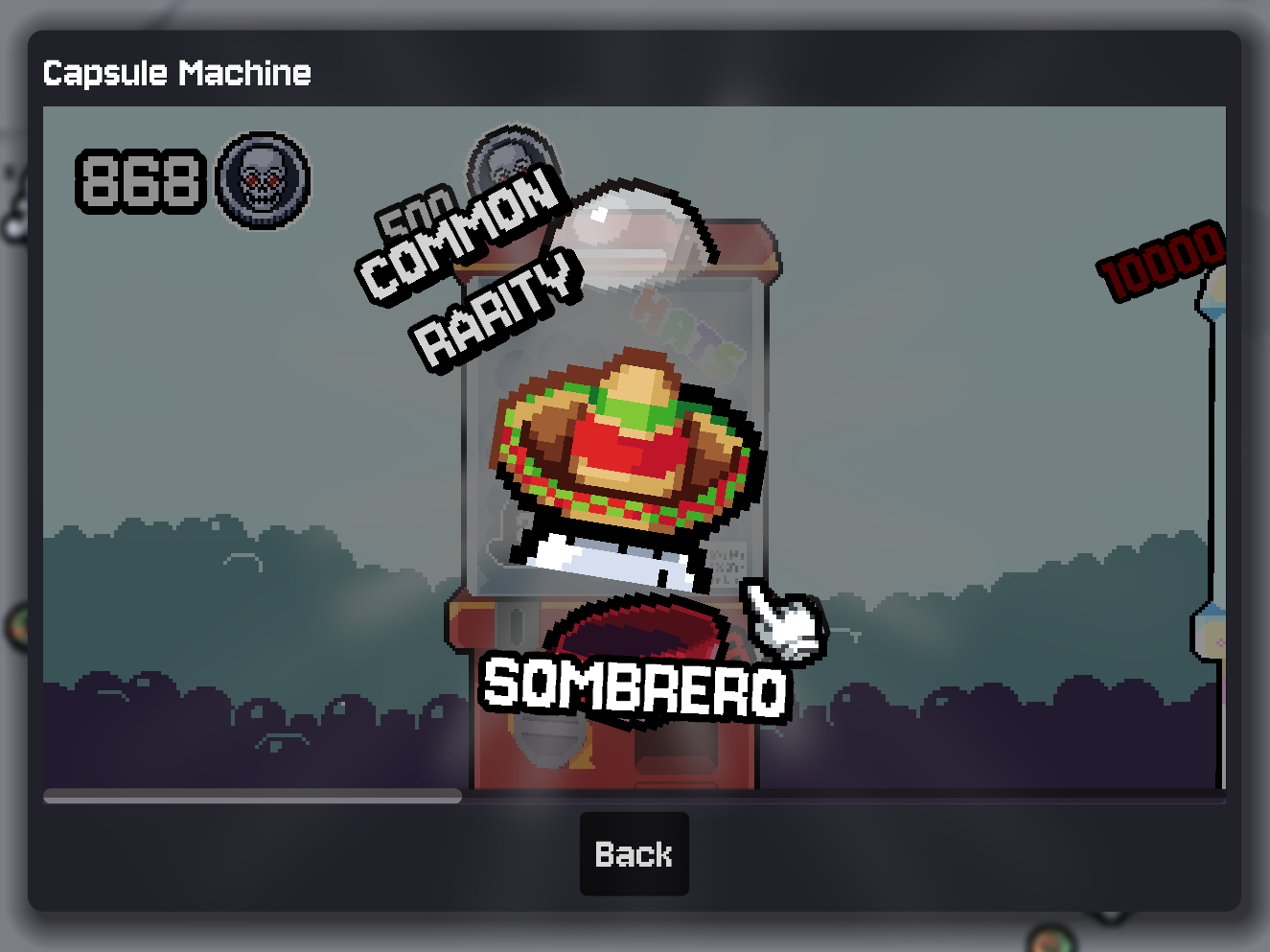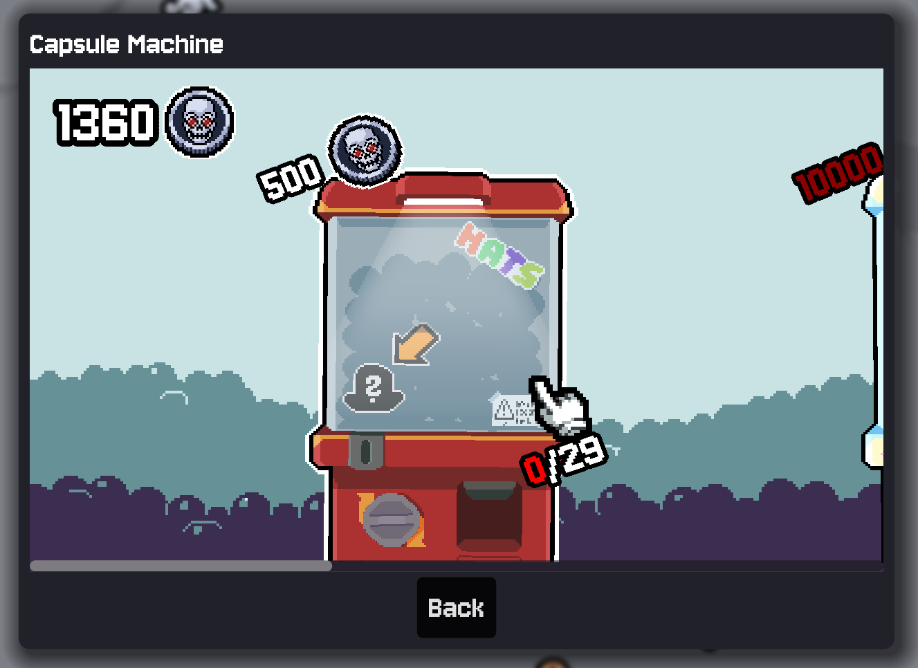 - Hat capsule machines! These machines give you tons of cool hats to customize your helpers - in exchange for skull tokens, which can be gathered by failing a flip (landing on the skull side)